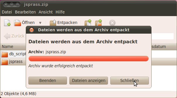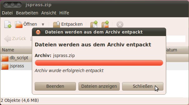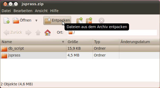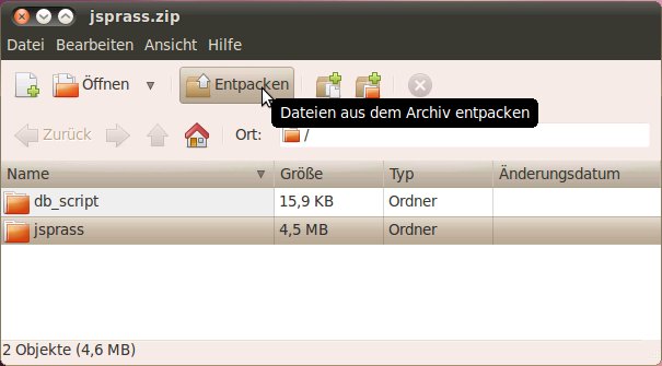 Um in weiterer Folge die Script-Datei mit den SQL-Kommandos zum Erstellen der Datenbank-Tabellen ausführen zu können, muss diese Datei temporär in einem Verzeichnis gespeichert werden (Beschreibung in Abschnitt Entpacken der Script-Datei mit den SQL-Kommandos für das Erstellen der Datenbank-Tabellen). Sie können