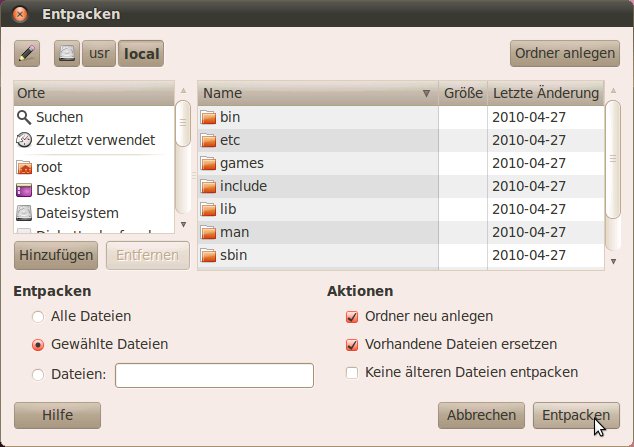 Entpacken