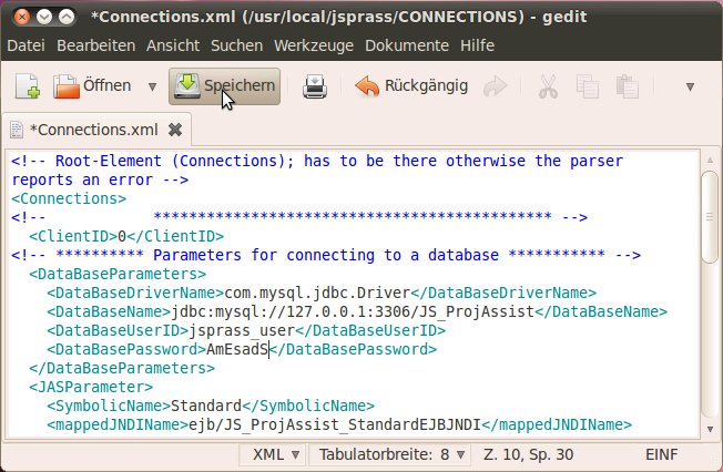 der Konfigurationsdaten für den Zugriff auf die Datenbank