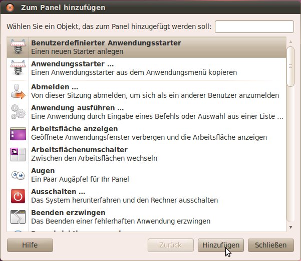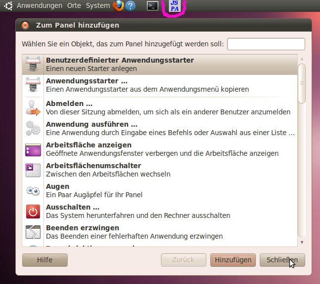 'Starter' mit dem Symbol in der Task-Leiste einzufügen.