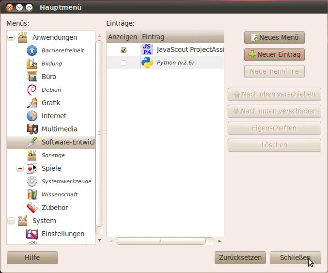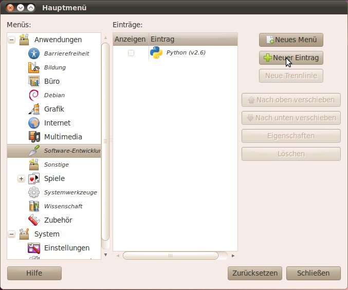 eines Eintrags im Anwendungsmenu