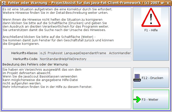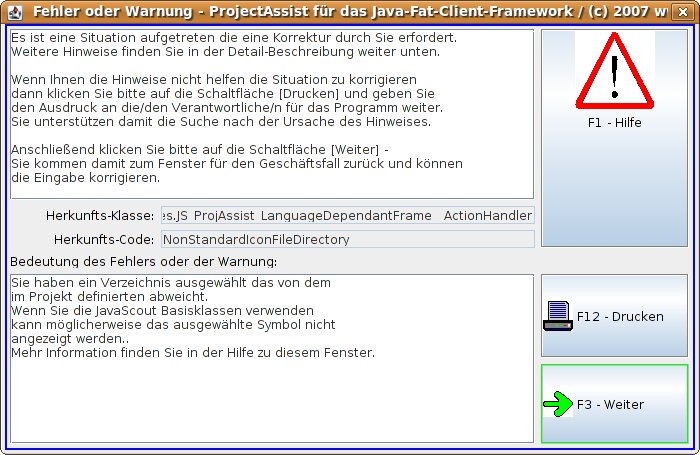 Die möglichen Warnungen (deren Ursachen durch den Benutzer korrigiert werden können) und Fehler (deren Ursachen Fehler innerhalb des Anwendungsprogramms oder technische Gebrechen sein können – und damit nicht durch den Benutzer korrigiert werden können) sind nicht im einzelnen in dieser Dokumentation aufgelistet.