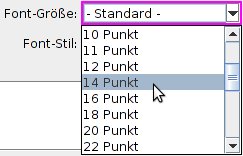 In diesem Auswahl-Feld kann die Schriftgröße (in Punkten) für das einzelne GUI-Element festgelegt werden oder die im Teilprogramm Layout-Eigenschaften der GUI verwalten definierte, für das gesamte Anwendungsprogramm gültige, Auswahl übernommen werden.