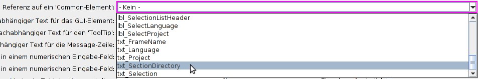 Text-Element ('Common-Element') erfolgt durch die Auswahl in der