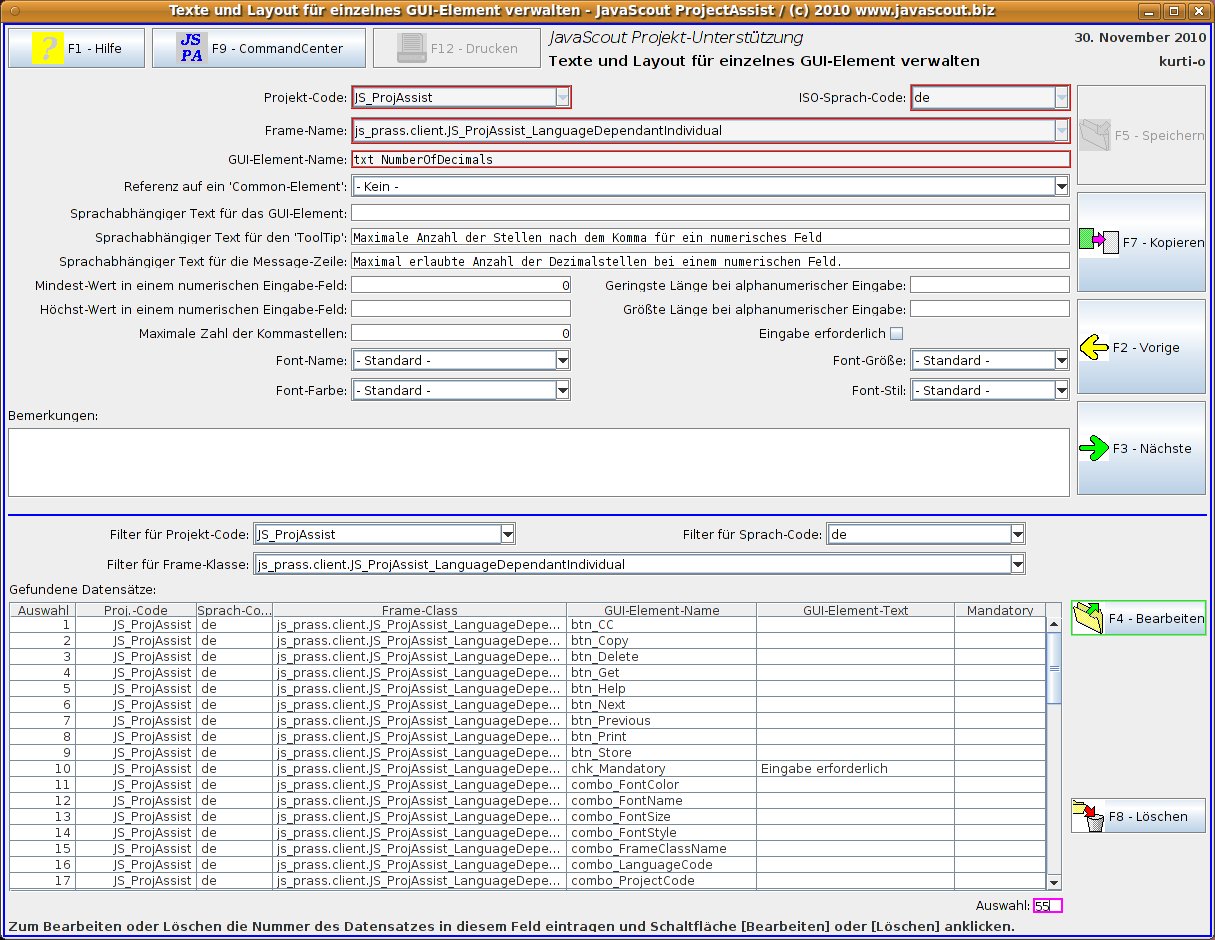 In diesem Teilprogramm werden sprachabhängige Texte, Layout und Eingabebeschränkungen, die für ein genau bestimmtes einzelnes GUI-Element in einem Teilprogramm gelten sollen, festgelegt.
