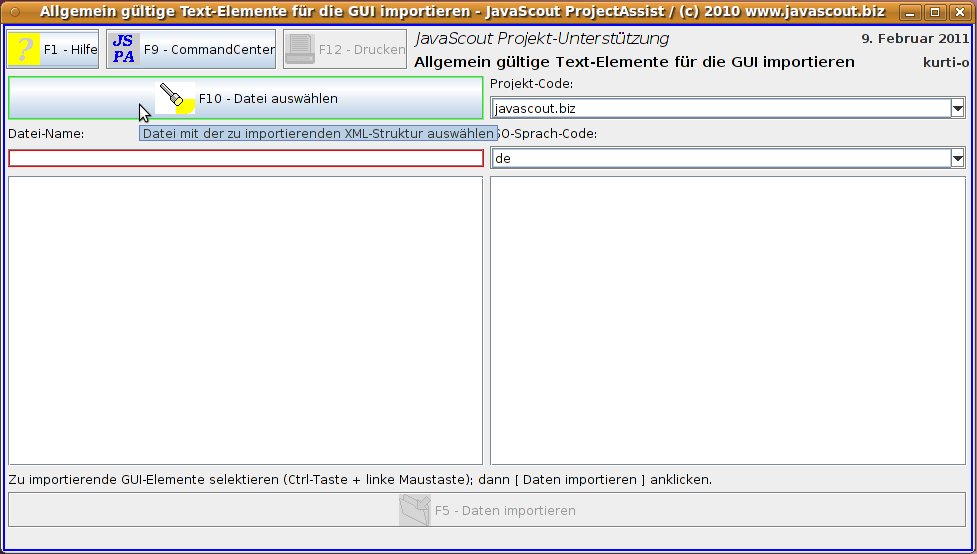 gültige Text-Elemente für die GUI der Frames im JavaScout