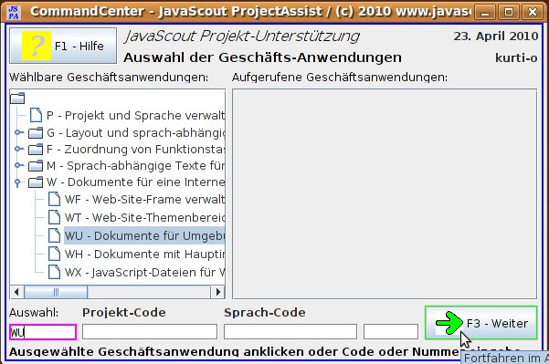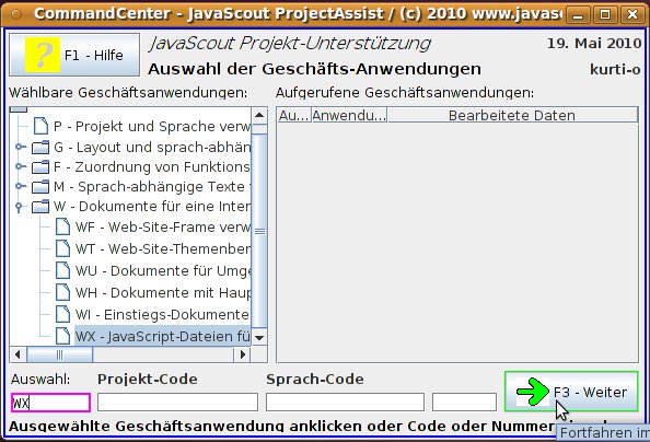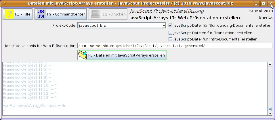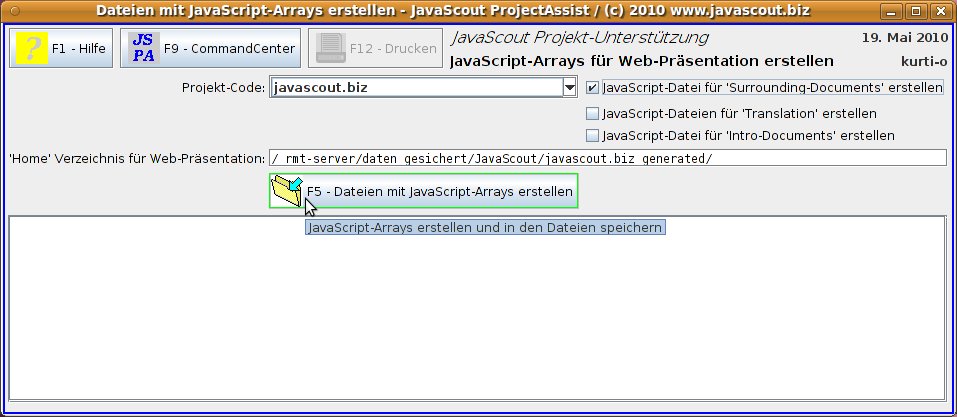 Detailbeschreibungen in folgenden Hilfe-Dokumenten: CommandCenter, Javascript-Dateien für Web-Site exportieren.