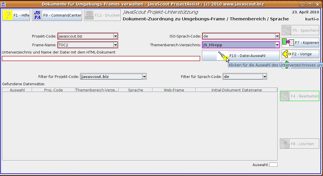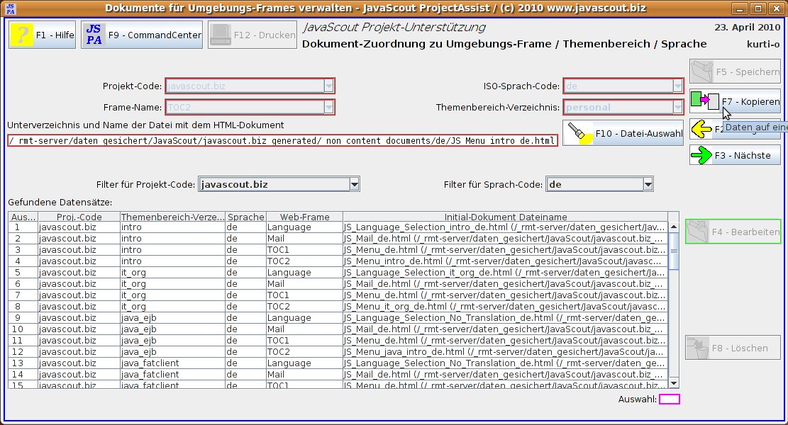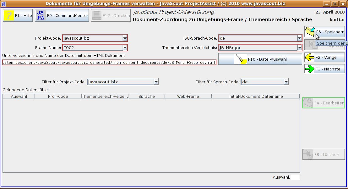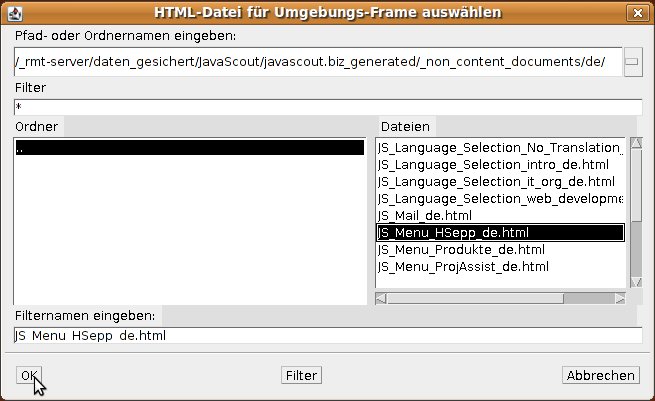 Anzeige der HTML-Dokumente in den Umgebungs-Frames