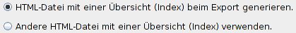 Einstellungen erfasst, die für das Generieren der HTML-Dateien