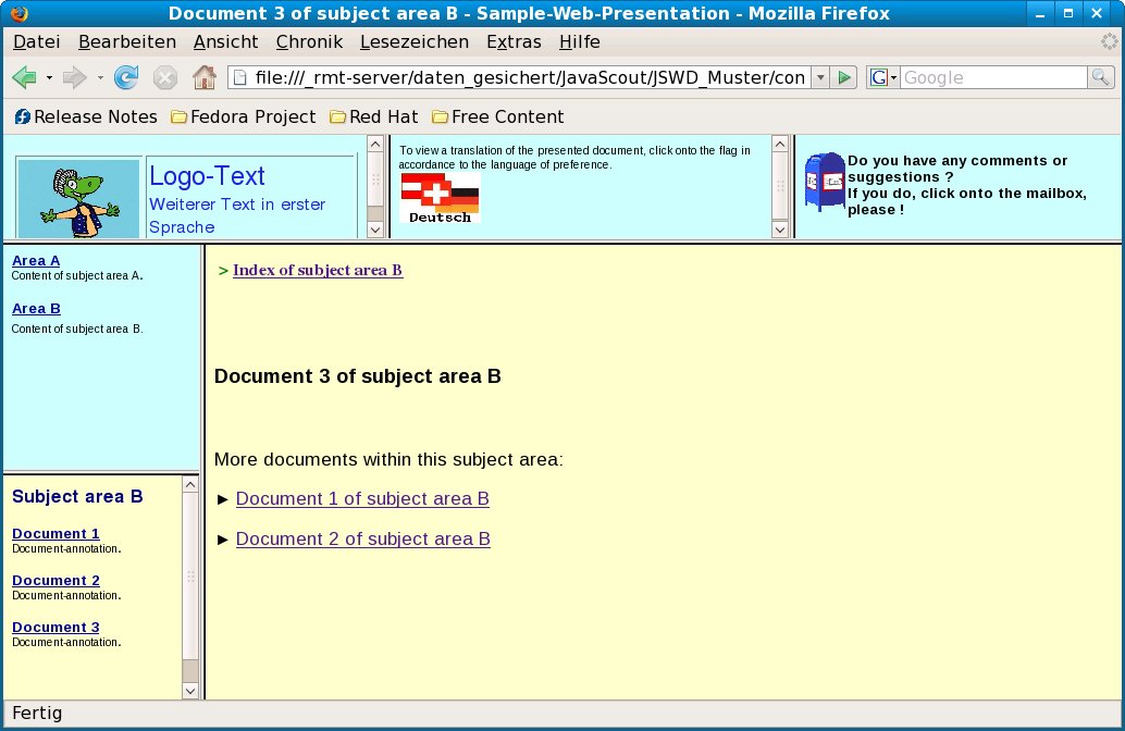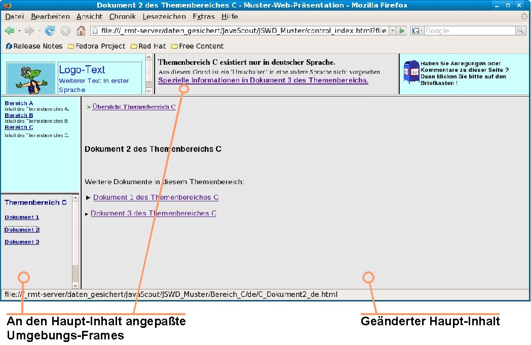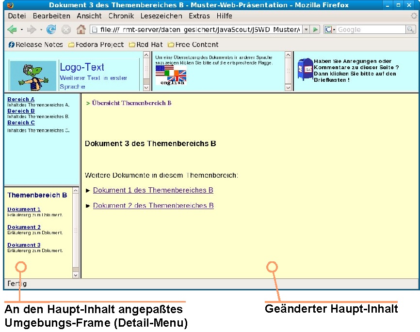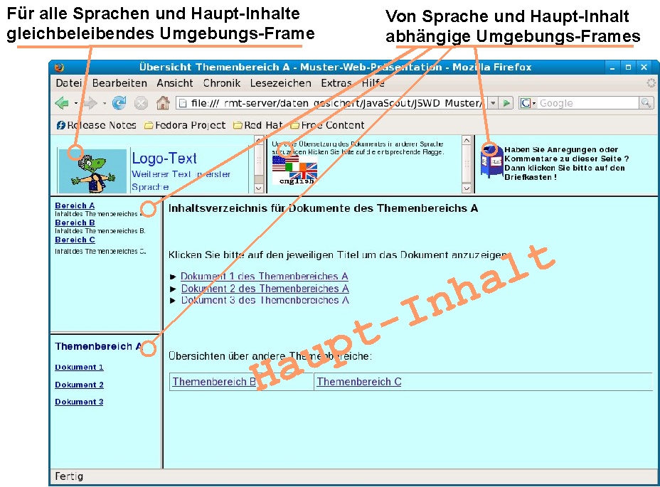 Besonderes Augenmerk wird auf die Gestaltung der Themenbereiche gelegt, mit denen die Inhalte der Umgebungs-Frames gesteuert wird.