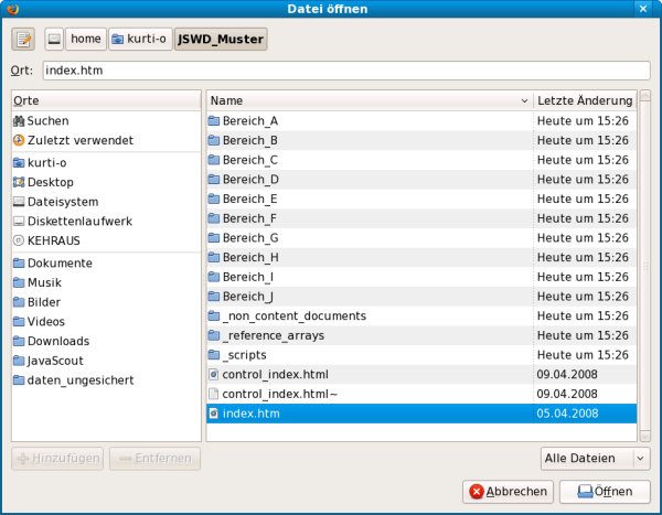 Web-Browser aufrufen und die verlinkten Dokumente der verschiedenen