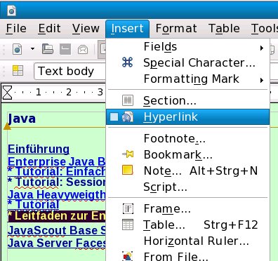von Links durch Editieren des HTML-Codes.